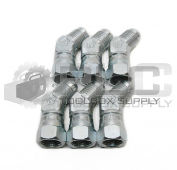 LOT OF 6 NEW PARKER 6 V6X-S SWIVEL 45 DEG ELBOW 3/8 JIC X 3/8 SWIVEL STEEL